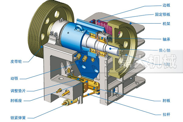 顎式破碎機俗稱顎破,又名老虎口。由動顎和靜顎兩塊顎板組成破碎腔,模擬動物的兩顎運動而完成物料破碎作業(yè)的破碎機。廣泛運用于礦山冶煉、建材、公路、鐵路、水利和化工等行業(yè)中各種礦石與大塊物料的破碎。被破碎物料的高抗壓強度為320Mpa。
