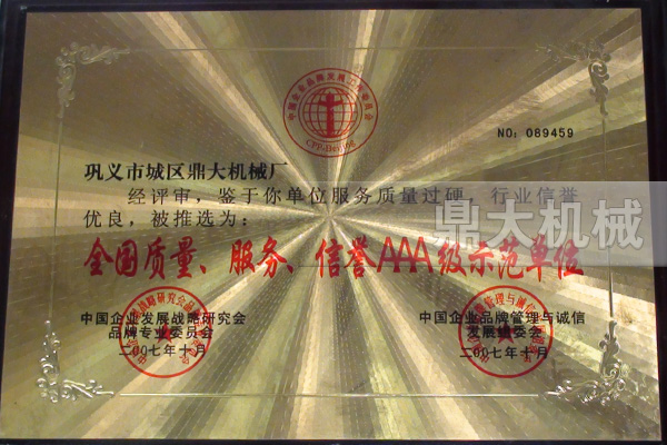 ? ? ? ? 質(zhì)量是生命,創(chuàng)新是動(dòng)力,服務(wù)是保證。鞏義市城區(qū)鼎大機(jī)械廠將本著“一切為了客戶,為了客戶的一切”的企業(yè)理念,秉承“精神打造臻品”的企業(yè)精神,不斷改革技術(shù),用自己優(yōu)秀的技術(shù)成果和競(jìng)爭(zhēng)性的產(chǎn)品性價(jià)營(yíng)造著自己的品牌,以滿腔熱情開拓新的領(lǐng)域,向理想昂首前行!